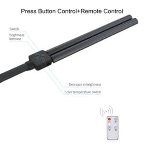 The lamp has a touch panel on the arm self and a remote control, from either of which you can change the settings.
