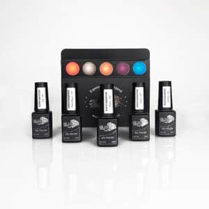 The Collection has 5 beautiful colours. Dense, high quality pigments of a new upgraded formula, our new texture to the gel with its minimal product usage, will make our 1 bottle last twice as long as any other gel on the market. This texture is the future of all gels. We are starting the next generation of gel polish here.Â